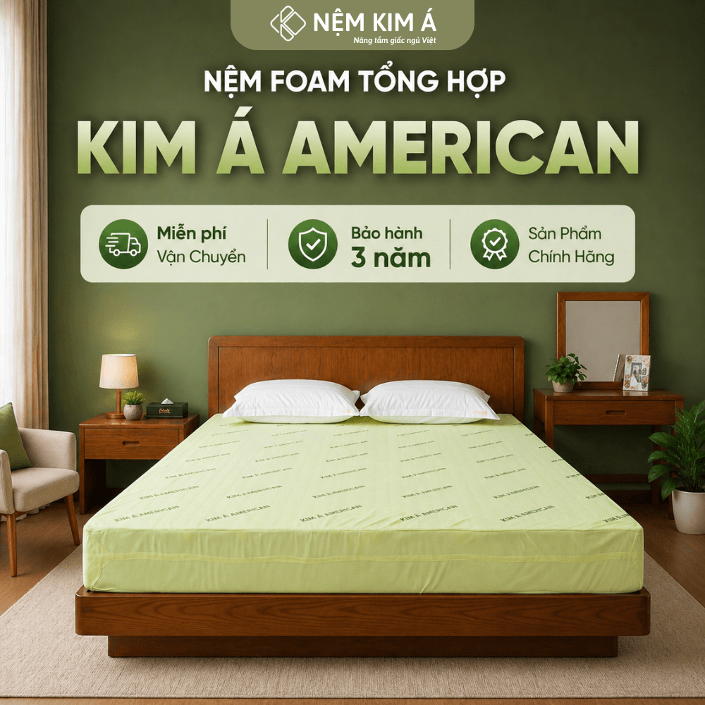 Nệm KIM Á american chất liệu chính từ cao su nhân tạo tổng hợp đã trở thành một lựa chọn phổ biến cho những người tìm kiếm nệm giá rẻ mà có sự thoải mái và hỗ trợ cho giấc ngủ.